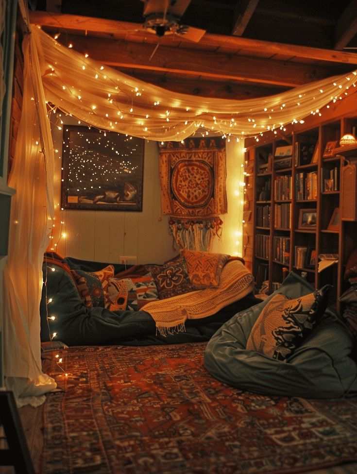 Lighting makes an immediate difference. String lights, candles, or even fairy lights around windows instantly bring warmth and festivity to a basement, making it feel cozy in minutes.
