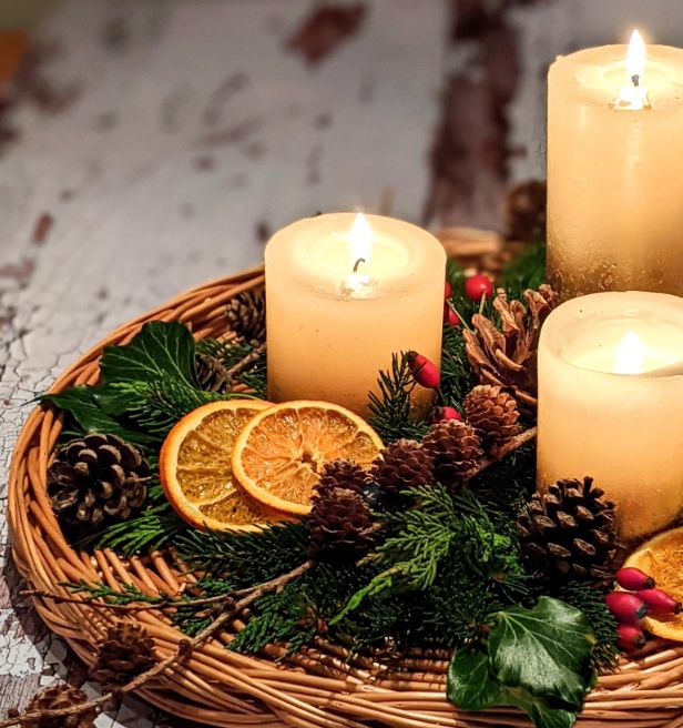 Candles with Evergreen Arrangements