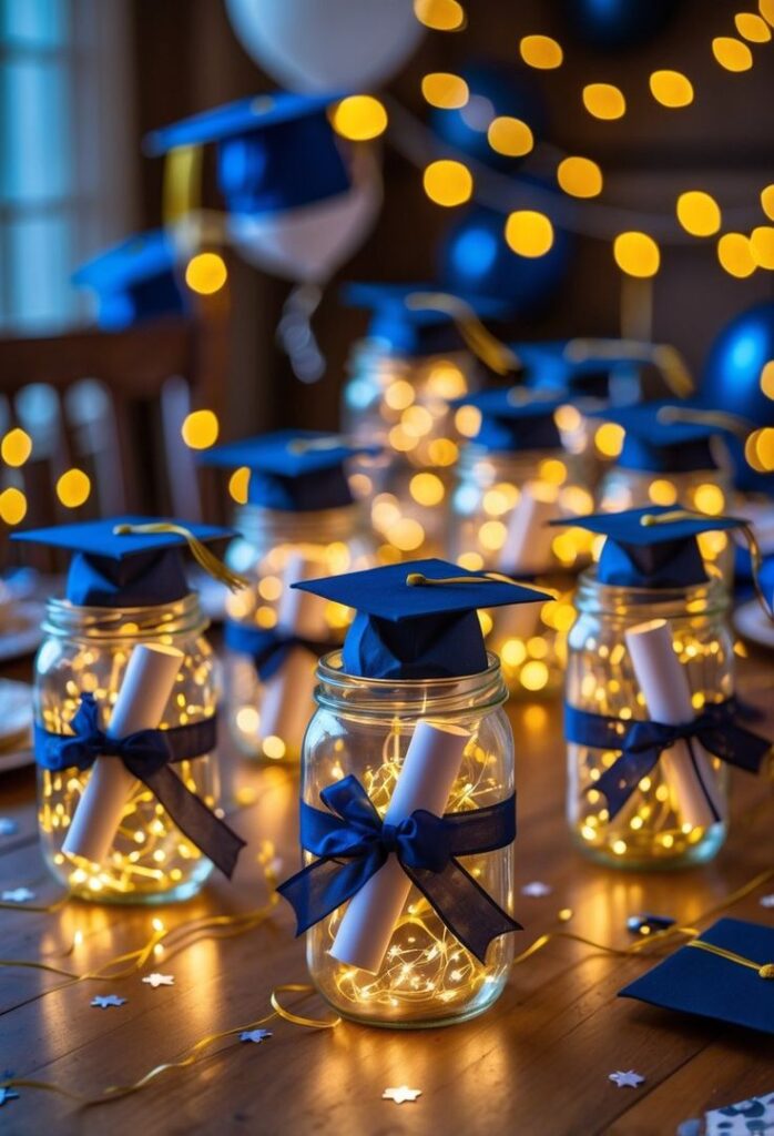 I like adding small elements that reflect achievement because it connects well with the graduation theme. Sometimes I include trophy-like decor pieces or metallic accents that symbolize success. It makes the table feel more meaningful and celebratory. I keep the design balanced so it still looks elegant and not too loud. It adds a unique touch that stands out from regular setups. For me, this idea always feels inspiring and perfectly suited for celebrating such an important milestone.