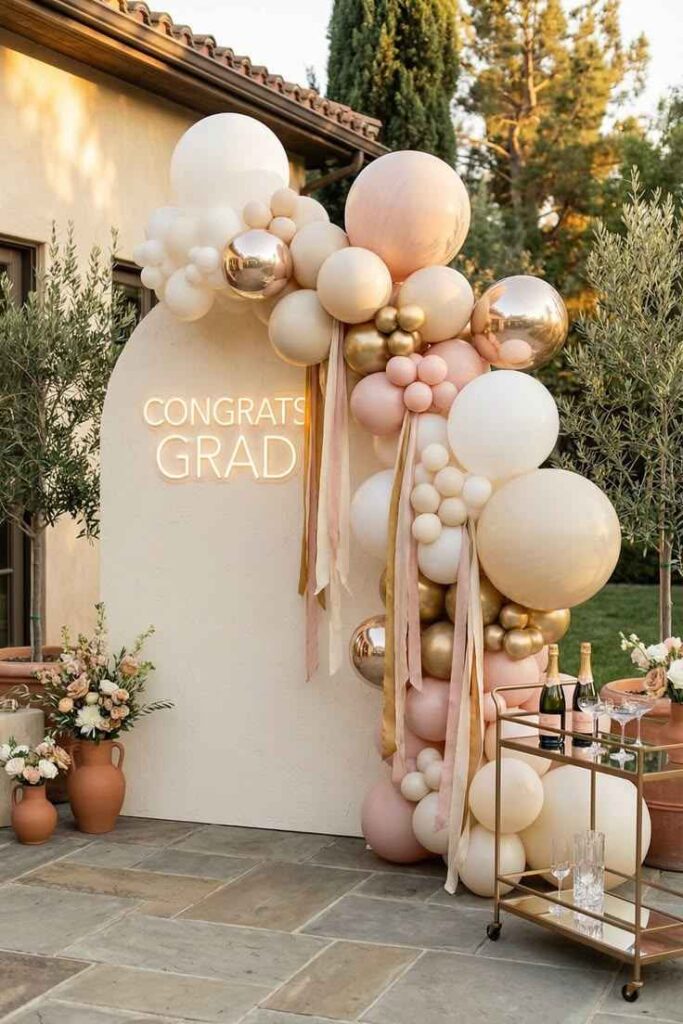 I always enjoy keeping things clean and simple when planning a graduation party. A modern minimal setup with neutral tones and a few stylish details feels fresh and very 2026. I usually focus on a clean table, soft colors, and one or two statement pieces like a backdrop or name display. It doesn’t feel empty, just well balanced. The whole space looks calm yet still celebratory. I avoid adding too many decorations because I want everything to feel intentional. It’s perfect when I want a chic and effortless setup that still looks beautiful.